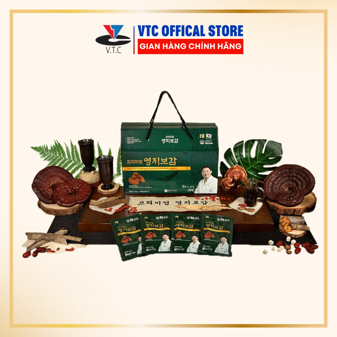 Chiết Xuất Linh Chi Và Hồng Sâm Hàn Quốc 6 Năm Tuổi Premium Lingzhi With 6 Years Korean Red Ginseng Thành phần chính: - Chiết xuất hỗn hợp thực vật 15% (táo tàu, rễ đương quy