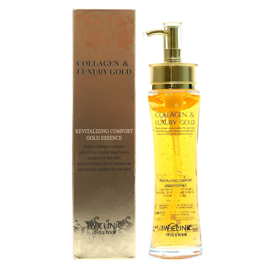 - Tinh Chất Tái Tạo Dưỡng Trắng Da 3W Clinic Collagen Luxury Gold (150ml) với công nghệ đột phá mới, tinh chất vàng 24k chiết suất bằng công nghệ nano giúp cải thiện nếp nhăn, chống lão hóa da và làm trắng da.