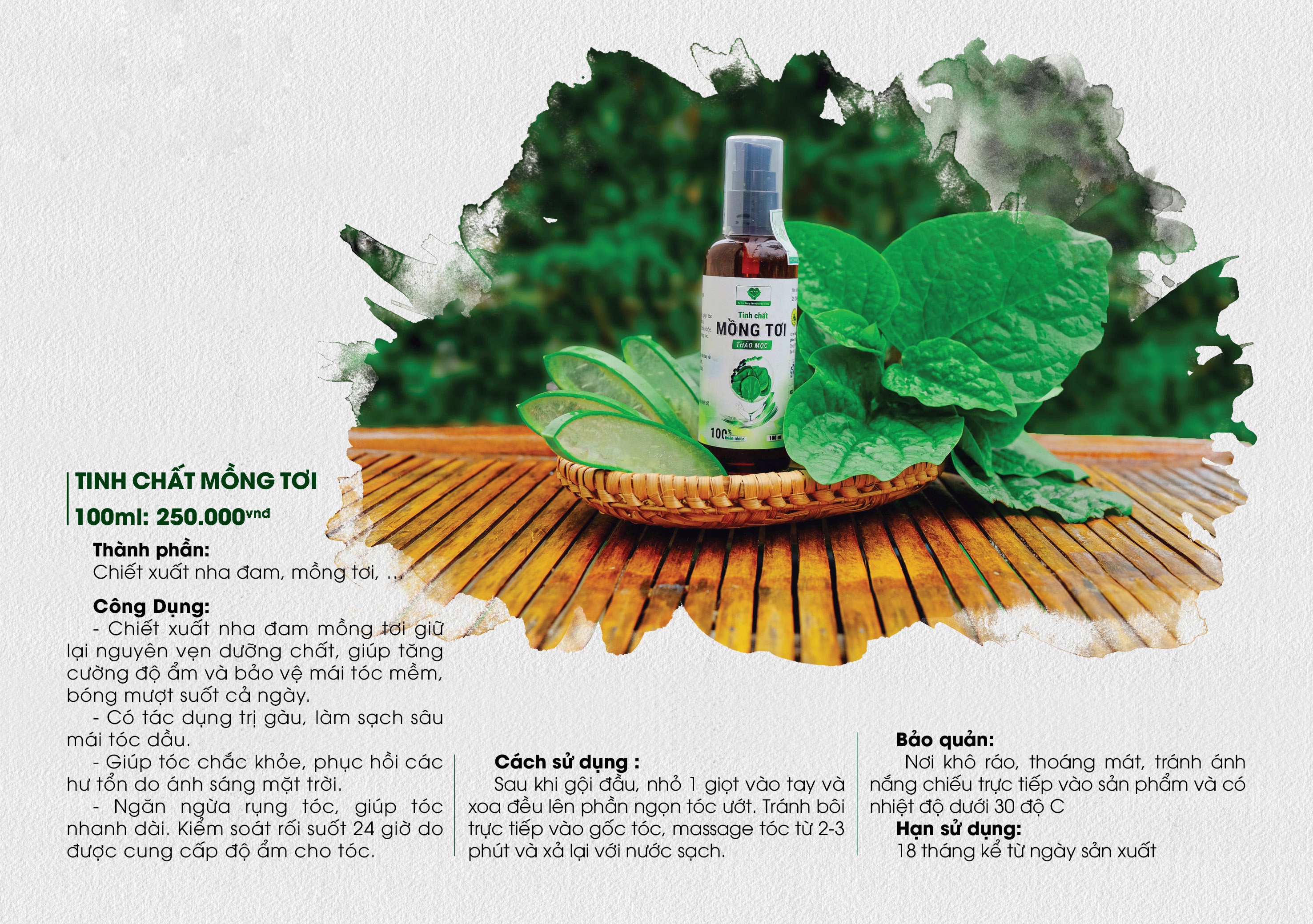 Với Công nghệ hiện đại chiết suất từ nha đam, mồng tơi giữ lại nguyên vẹn dưỡng chất giúp tăng cường độ ẩm, bảo vệ mái tóc mềm mại bóng mượt suốt cả ngày. Ngoài ra Nha đam, mồng tơi còn có tác dụng giảm gàu, làm sạch sâu mái tóc dầu, giúp tóc chắc khỏe, phục hồi tóc hư tổn, ngăn ngừa rụng tóc, giúp tóc nhanh dài.
