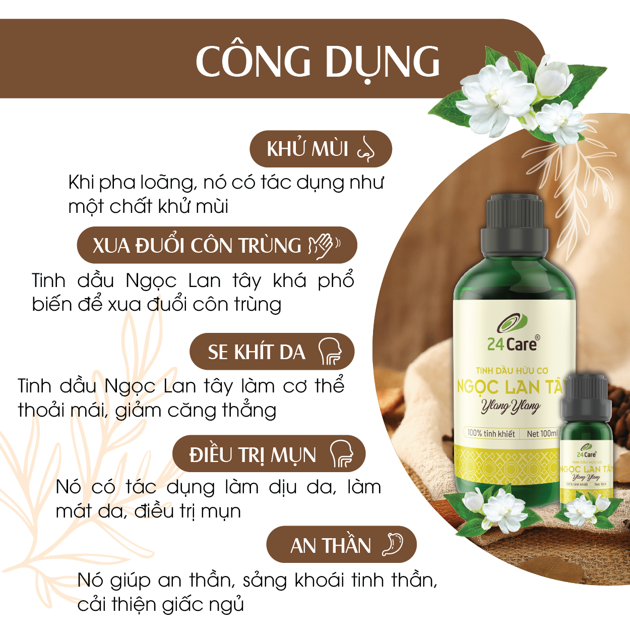 ✨Tinh Dầu Ngọc Lan Tây 24Care 100ml - Tinh Dầu Ylang Ylang Xông Phòng Giúp Ngủ Ngon, Giảm Căng Thẳng, Đau Đầu, Đau Nhức Xương Khớp, Khử Khuẩn và Thơm Phòng