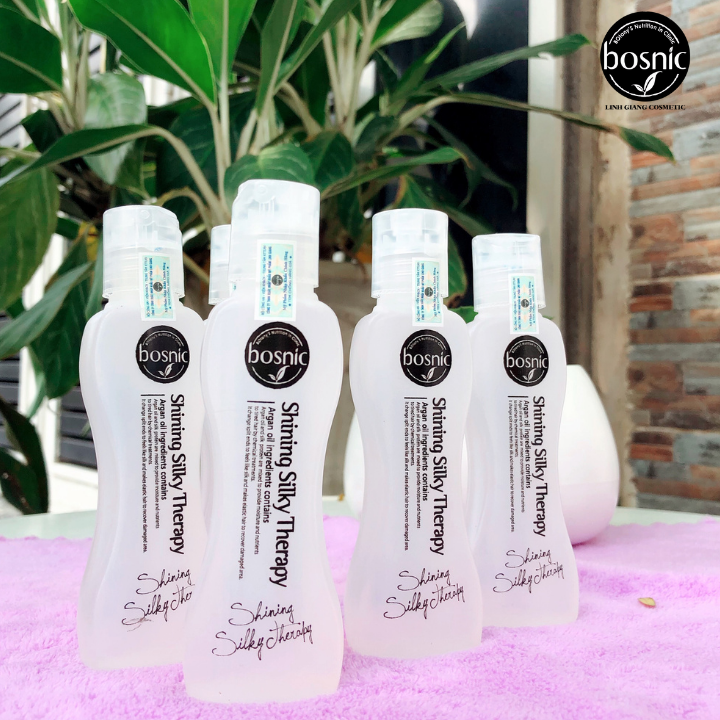 Tinh Dầu Siêu Mượt Bosnic - Shining Silky Therapy 60ml là lựa chọn hàng dầu trong sản phẩm dưỡng tóc. Với tinh chất từ quả Argan giúp cho tóc sau khi sử dụng sản phẩm luôn óng mượt, giảm gãy rụng,chẻ ngọn, khô xơ và vô số các vấn đề về tóc đều sẽ được giải quyết chỉ với 1 chai tinh dầu Silky. Đối với những khách hàng thường xuyên sử dụng các loại máy nhiệt để tạo kiểu tóc (uốn, duỗi,bấm tóc, v..v) hoặc đã từng sử dụng qua hóa chất làm tóc thì tóc sẽ dần mất đi độ cân bằng, suôn mượt và chắc khỏe vốn có, chính vì thế, việc sử dụng tinh dầu siêu mượt Shining Silky Therapy trước khi sử dụng hóa chất làm tóc sẽ giúp giảm thiểu hư tổn cho tóc, cân bằng lại độ ẩm và giúp tóc luôn chắc khỏe, bóng mượt.