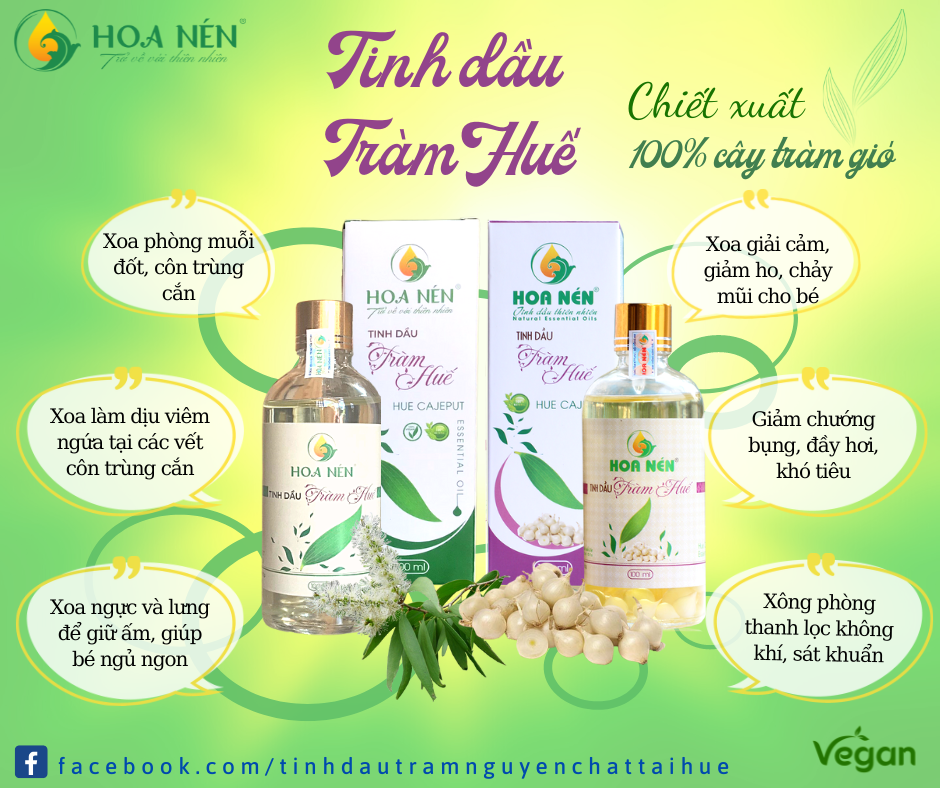 ✨Tinh dầu Tràm Huế nguyên chất Hoa Nén 100ml - Chuẩn VietGAP - Chăm sóc sức khỏe mẹ và bé
