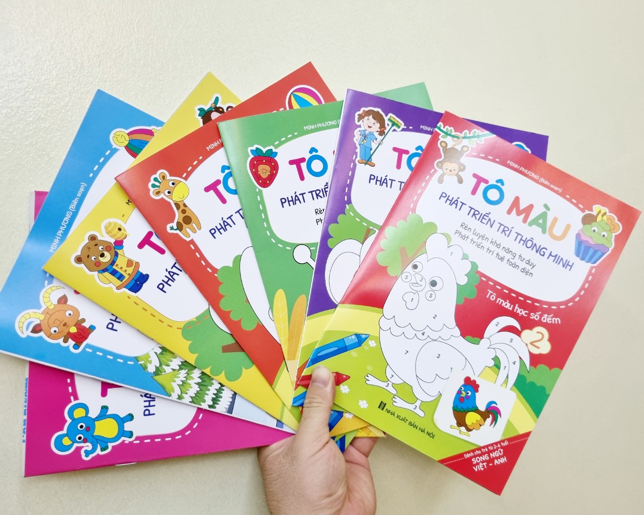 Bộ 8 cuốn Tô Màu Phát Triển Trí Thông Minh Dành Cho Bé 2-6 tuổi Song Ngữ Việt Anh Rèn Luyện Khả Năng Tư Duy Phát Triển Trí Tuệ Toàn Diện Bộ sách gồm: 1.