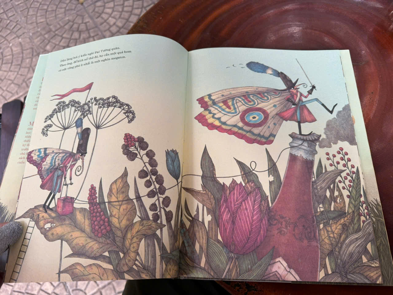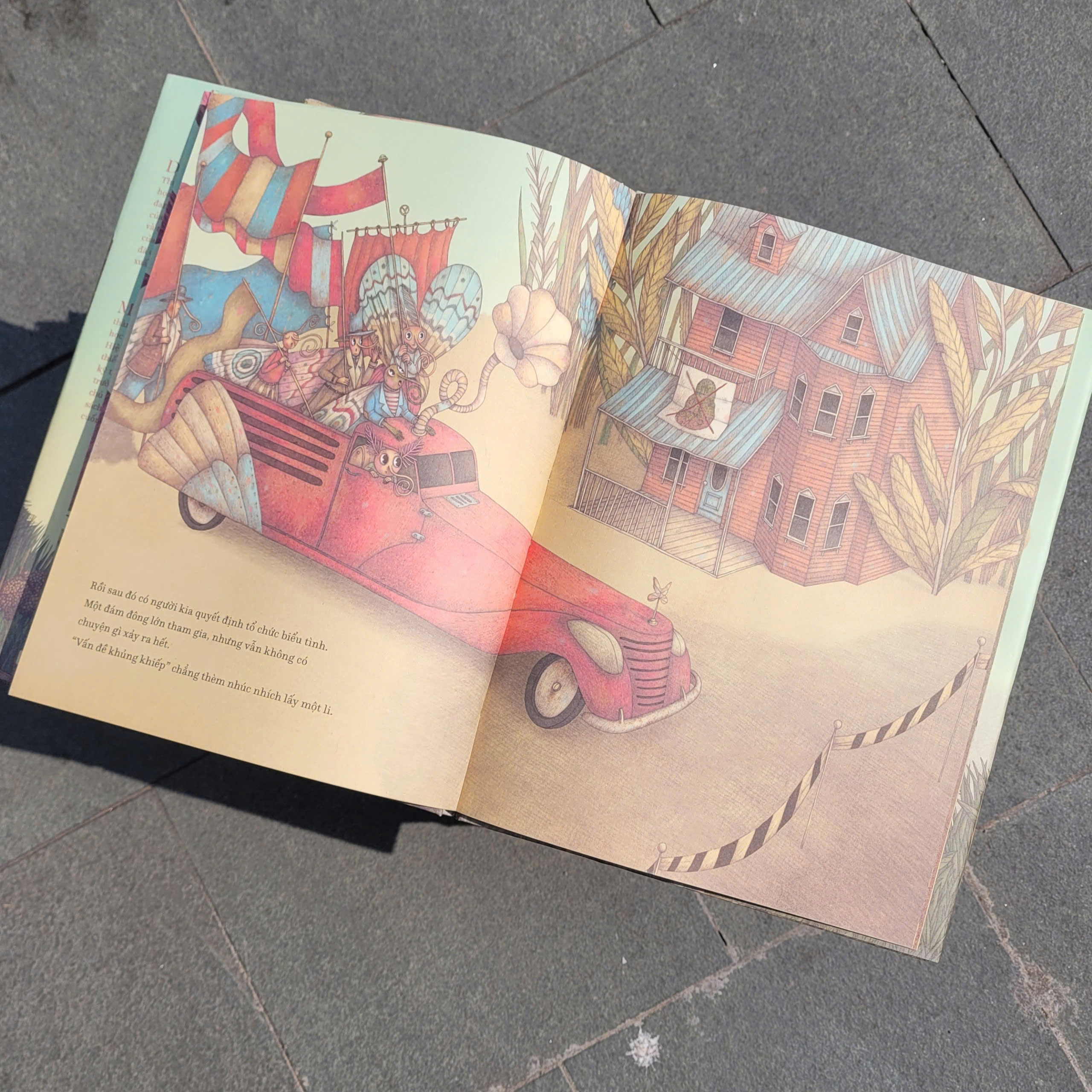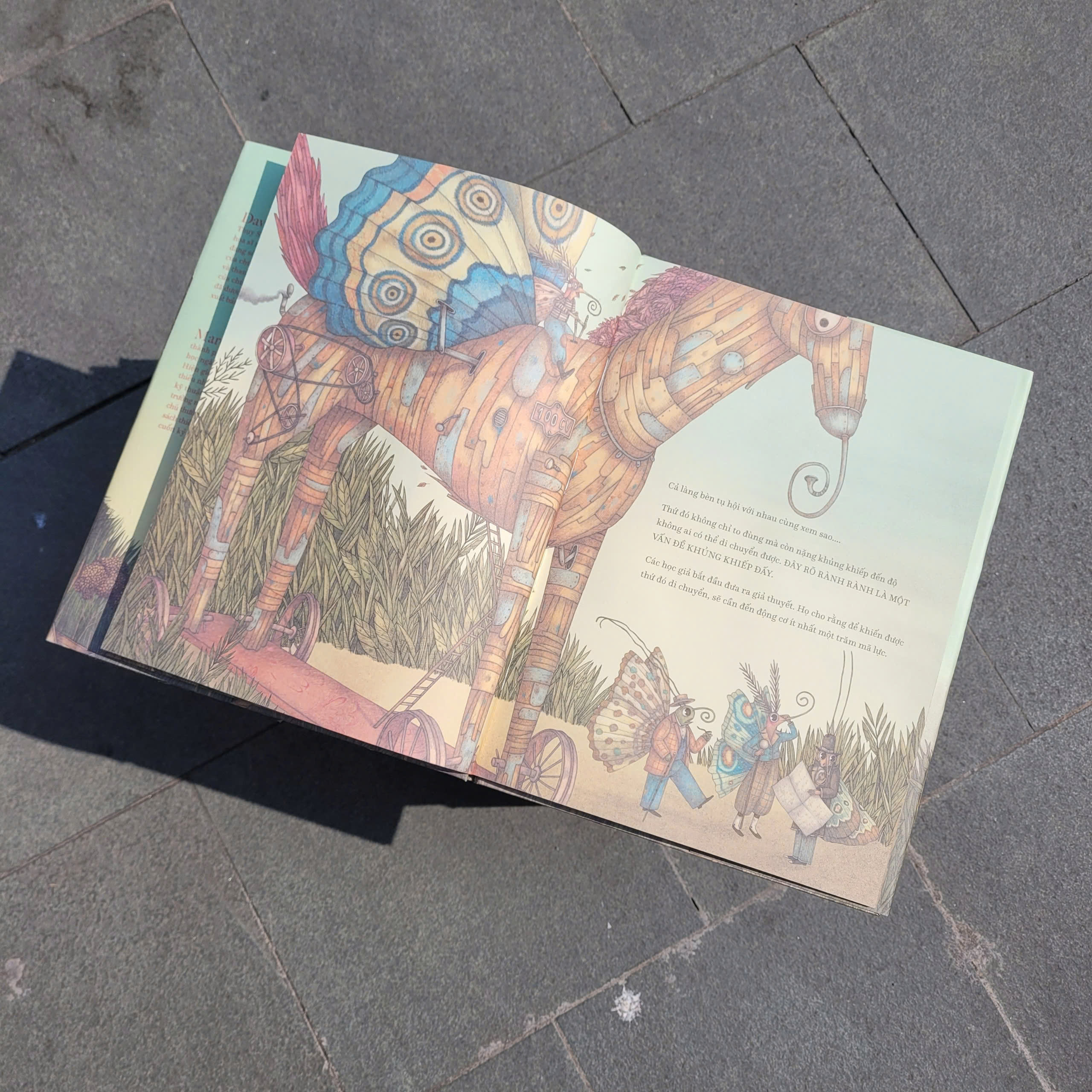 Ở làng bươm bướm yên bình nọ, vào một buổi sáng, đột nhiên có vật thể lạ rất to từ trên trời rơi xuống. Không một ai biết đó là cái gì, mọi người đều rất cảnh giác. Đại tướng quân cho rằng đây là một quả bom do kẻ địch gửi tới, nhà phát minh, nhà hiền triết, gã tò mò, kẻ bi quan lần lượt đưa ra nhận định của mình về vật thể lạ đã xuát hiện trong làng mình. Nhưng tuyệt nhiên không một ai có thể đưa ra giải pháp, tất cả đều e sợ thứ mà mình không biết này. Mọi việc chỉ được giải quyết khi một cô bé ngây thơ trong làng tiến tới và... nếm thử một miếng của vật thể lạ đó. Hoá ra nó rất ngon! Mọi người hết lo sợ mà ùn ùn kéo đến lấy phần. Cuối cùng, vấn đề kì lạ - to lớn đó đã được mọi người trong làng cùng nhau giải quyết hết!