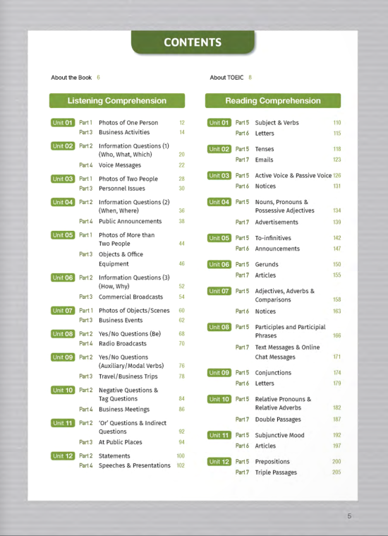 Chapter 01: Listening Comprehension - Part 1: Strategies - Part 2: Strategies - Part 3, 4: General Strategies - Part 3: Strategies - Part 4: Strategies Chapter 02: Reading Comprehension - Unit 01: Structural Understanding