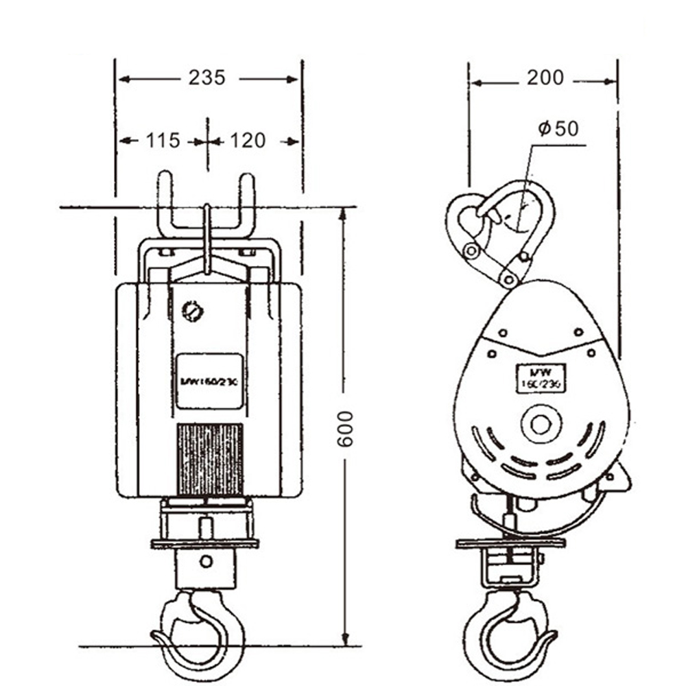 - Có thể hoạt động trên nguồn điện tiêu chuẩn trong nhà 220V, nguồn điện khá phổ biến khắp vùng lãnh thổ cả nước. Tời điện mini này hoạt động ở điều kiện điện áp 1 pha.