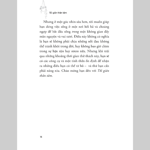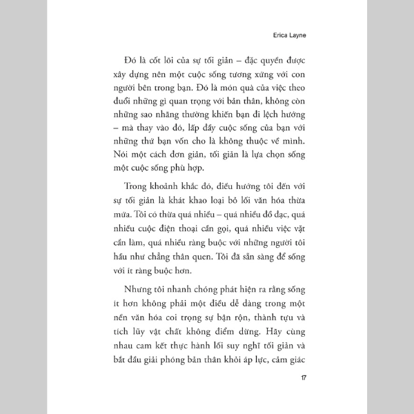 Thông qua cuốn sách của Erica Layne, hãy cùng khám phá cách áp dụng lối tư duy tối giản vào mọi khía cạnh của cuộc sống bằng cách thay đổi cách bạn nghĩ về nhà cửa, sự nghiệp, các mối quan hệ, gia đình và tiền bạc... Với triết lý thực tế, các bài tập và hoạt động đơn giản cùng các chiến lược dễ áp dụng để loại bỏ những phiền nhiễu và căng thẳng không cần thiết, đây là cuốn sách hướng dẫn cần thiết cho bất cứ ai muốn giải tỏa sự lộn xộn về thể chất, tinh thần và cảm xúc.