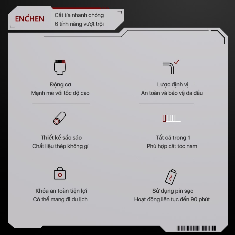 Tông đơ cắt tóc đa chức năng Enchen Beardo 2 chất liệu thép không gỉ nhiều cữ linh hoạt • Thương hiệu: Enchen • Model: Beardo2 • Màu sắc: Đen • Điện áp định mức: