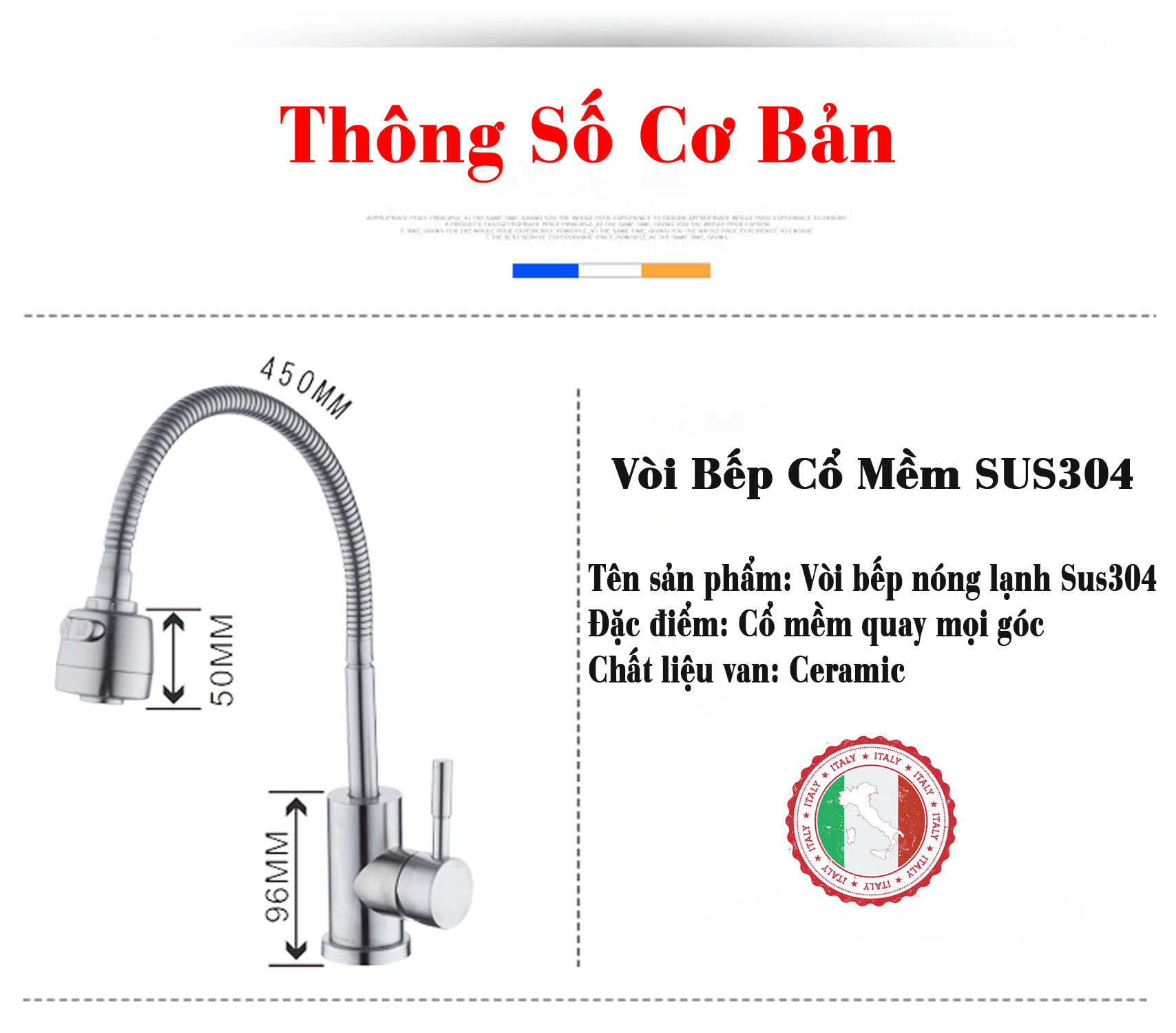 Chất liệu: Inox 304 Thiết kế 2 đường nước nóng – lạnh Thân vòi có thể xoay 360 độ Đầu vòi tạo bọt, hạn chế bắn nước khi sử dụng Bảo hành 5 năm chính