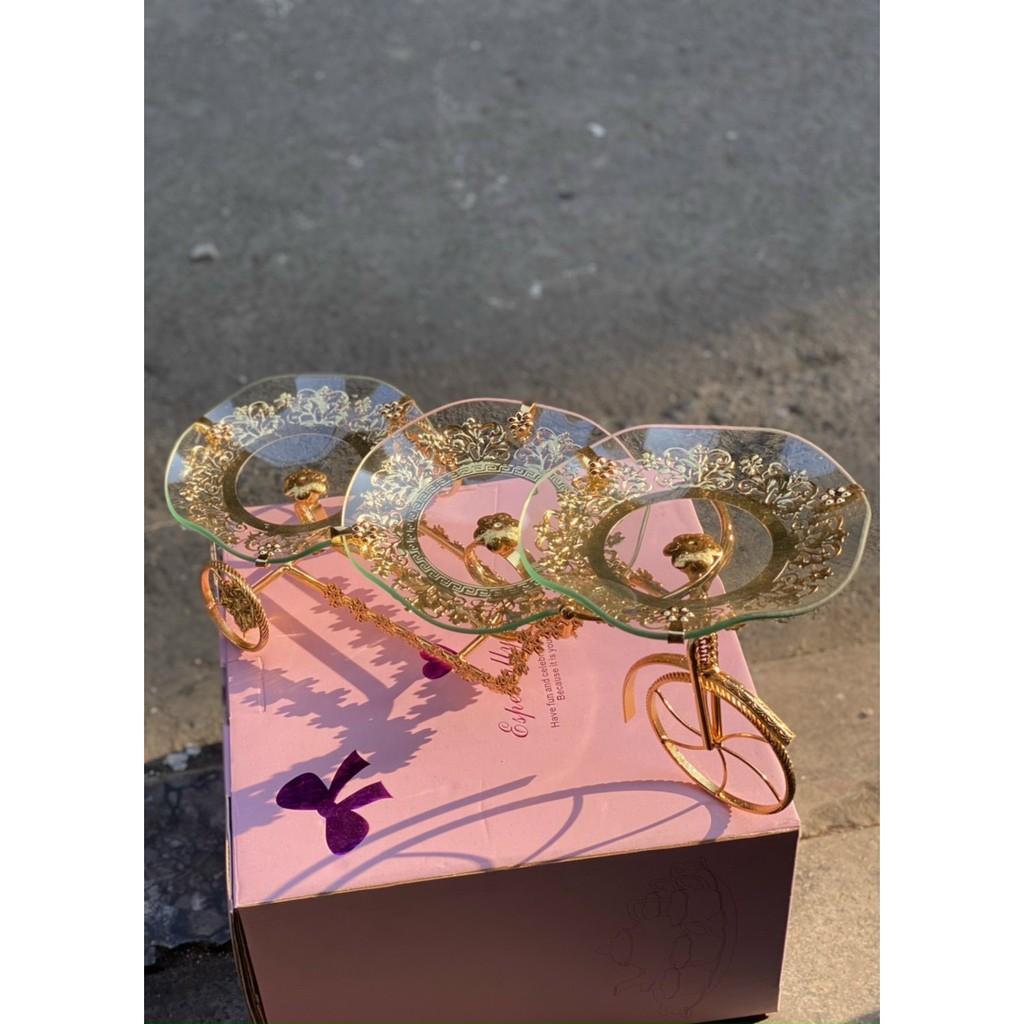 ✨Tổng hợp Đĩa Thủy Tinh Khảm Hoàng Gia Cao Cấp | KỆ THỦY TINH 2 - 3 TẦNG KHUNG HỢP KIM CAO CẤP TRẮNG VÀNG HÌNH THỰC TẾ
