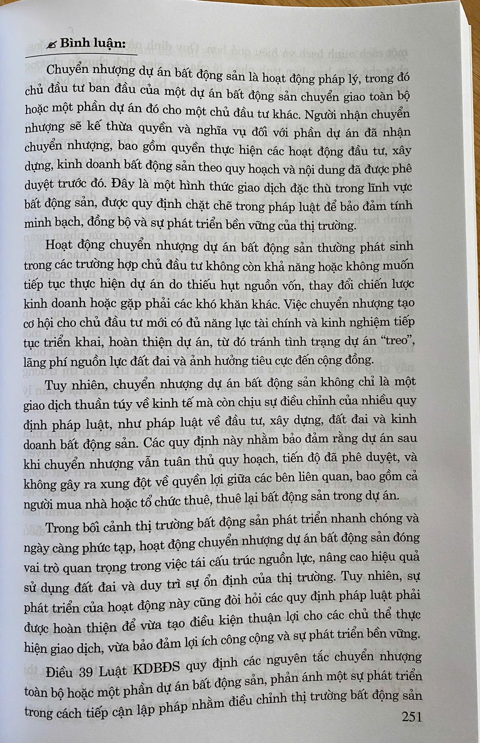 Sách tham khảo “Tổng luận và bình giải: Luật Kinh doanh Bất động sản năm 2023 (được sửa đổi, bổ sung năm 2024)” được biên soạn tiếp cận giữa lý luận và thực tiễn, giữa tư duy học thuật và kinh nghiệm thực hành, đánh giá tác động, luận giải các rủi ro pháp lý tiềm ẩn trong từng giao dịch mà nhà đầu tư và các chủ thể tham gia thị trường bất động sản cần lưu tâm. Sách được biên soạn bởi tác giả là PGS.TS. Nguyễn Minh Hằng, Phó Giám đốc Học viện Tư pháp, Bộ Tư pháp, Tổng Biên tập Tạp chí Nghề luật và ThS. NCS Trần Chí Thành, giảng viên Trường Đại học Luật, Đại học Huế là hai chuyên gia pháp luật đến từ hai môi trường đào tạo, nghiên cứu khoa học pháp lý, thực hành nghề luật ứng dụng có uy tín ở Việt Nam. Sách được tiếp cận nghiên cứu phân tích làm rõ nội dung của từng điều luật từ hàn lâm, thực tiễn đến phản biện chính sách nhằm bình luận các nội dung tích cực, bổ ích cho nhu cầu tìm hiểu, nghiên cứu, giảng dạy, học tập và ứng dụng thực tiễn.