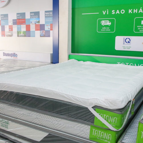 CẤU TẠO CỦA TOPPER TATANA - Vải Cotton: Topper Tatana được sản xuất theo quy chuẩn độ phồng 5cm, đây là dòng topper nệm cao cấp, hiện đại,phù hợp với nhu cầu sống hiện đại.