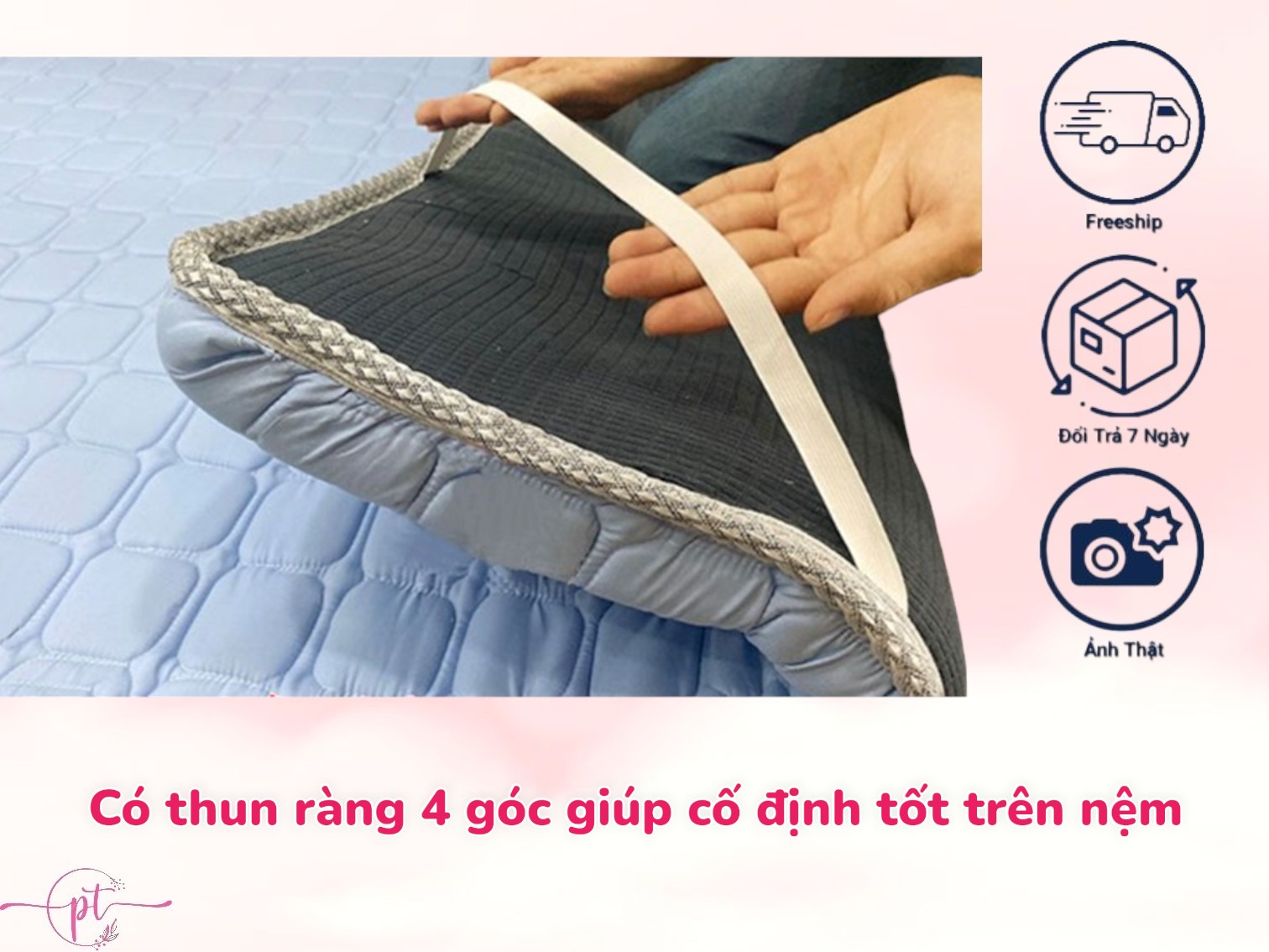 - Có thun ràng 4 góc giúp cố định tốt trên nệm.