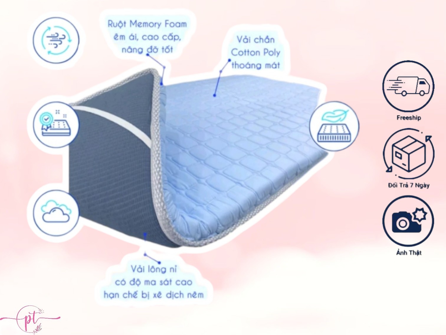 Dùng như tấm làm mềm nệm để bảo vệ tấm nệm hoặc trải sàn, mang theo làm nệm ngủ văn phòng đều được CHẤT LIỆU ---------------------------- - Lớp ngoài: Sử dụng vải Cotton Poly thông