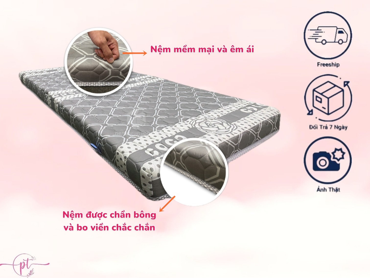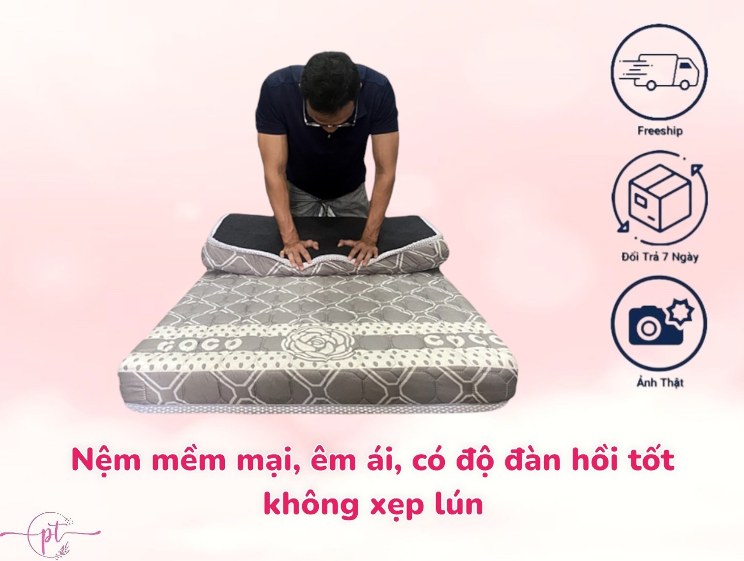Dùng như tấm làm mềm nệm để bảo vệ tấm nệm hoặc trải sàn, mang theo làm nệm ngủ văn phòng đều được CHẤT LIỆU ---------------------------- - Lớp ngoài: Sử dụng vải Cotton Poly thông