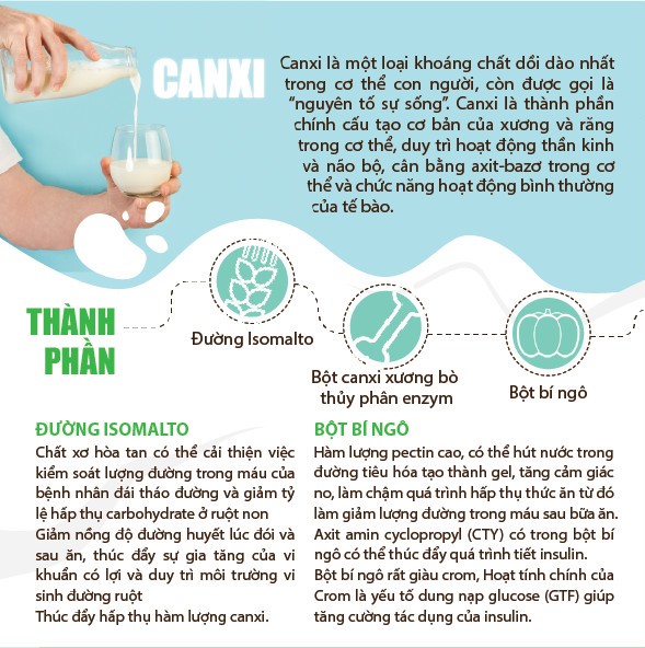 Đối tượng sử dụng: Người trưởng thành cần bổ sung canxi, người bị tiểu đường thiếu hụt canxi