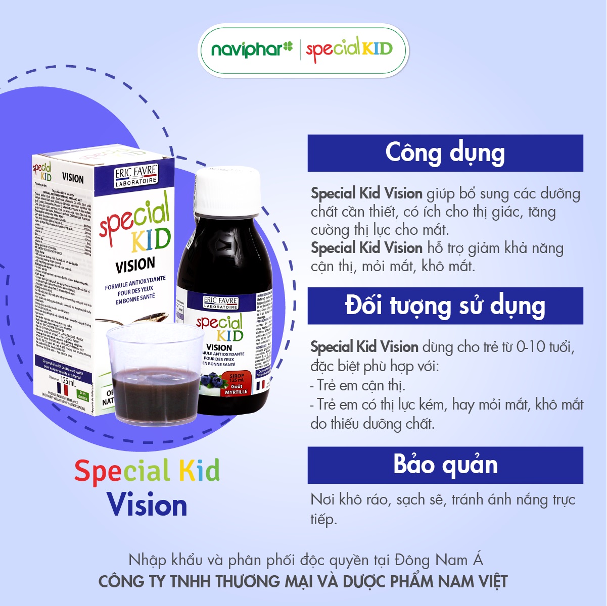 Siro tăng cường thị lực Cơ chế bảo vệ mắt 3 lớp, Giảm nhức mỏi mắt TPBVSK Special Kid Vision 125ml [Nhập khẩu - Pháp] Special Kid là thương hiệu nhập khẩu nguyên hộp từ