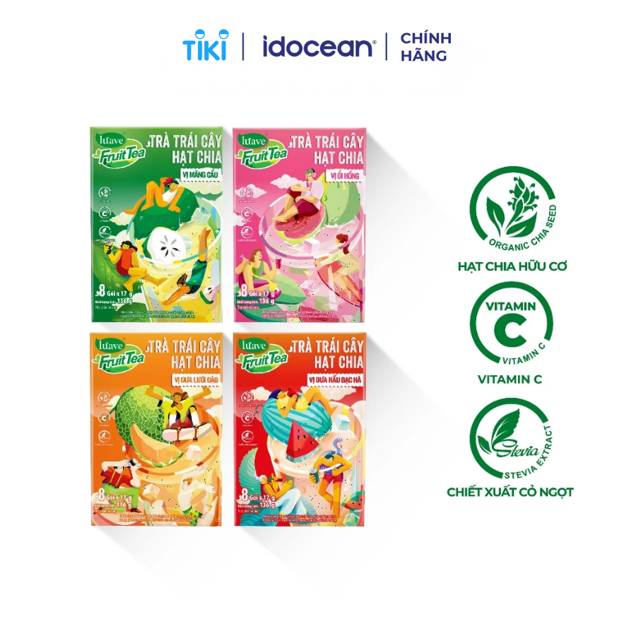 Trà hòa tan trái cây Lúave là dòng sản phẩm kết hợp giữa trà và hạt chia, có chiết xuất từ lá trà đen và trà xanh. Đặc biệt, trà trái cây hạt chia Lúave còn