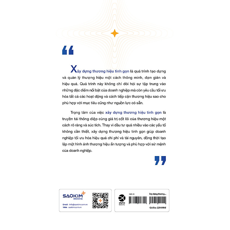Mua tại TiktokCuốn sách này được viết với mục tiêu giúp các doanh nghiệp SME và Startup có thể tạo dựng và quản lý thương hiệu một cách hiệu quả, mà vẫn tối giản và linh hoạt phù hợp với tài nguyên có hạn mà họ sở hữu. Thay vì bị áp đặt với những cách tiếp cận và phương pháp xây dựng thương hiệu của các tập đoàn lớn, cuốn sách Xây dựng thương hiệu tinh gọn chú trọng vào việc đưa ra những chiến lược đơn giản nhưng hiệu quả để thúc đẩy sự phát triển và trở thành một thương hiệu đáng tin cậy và thành công.