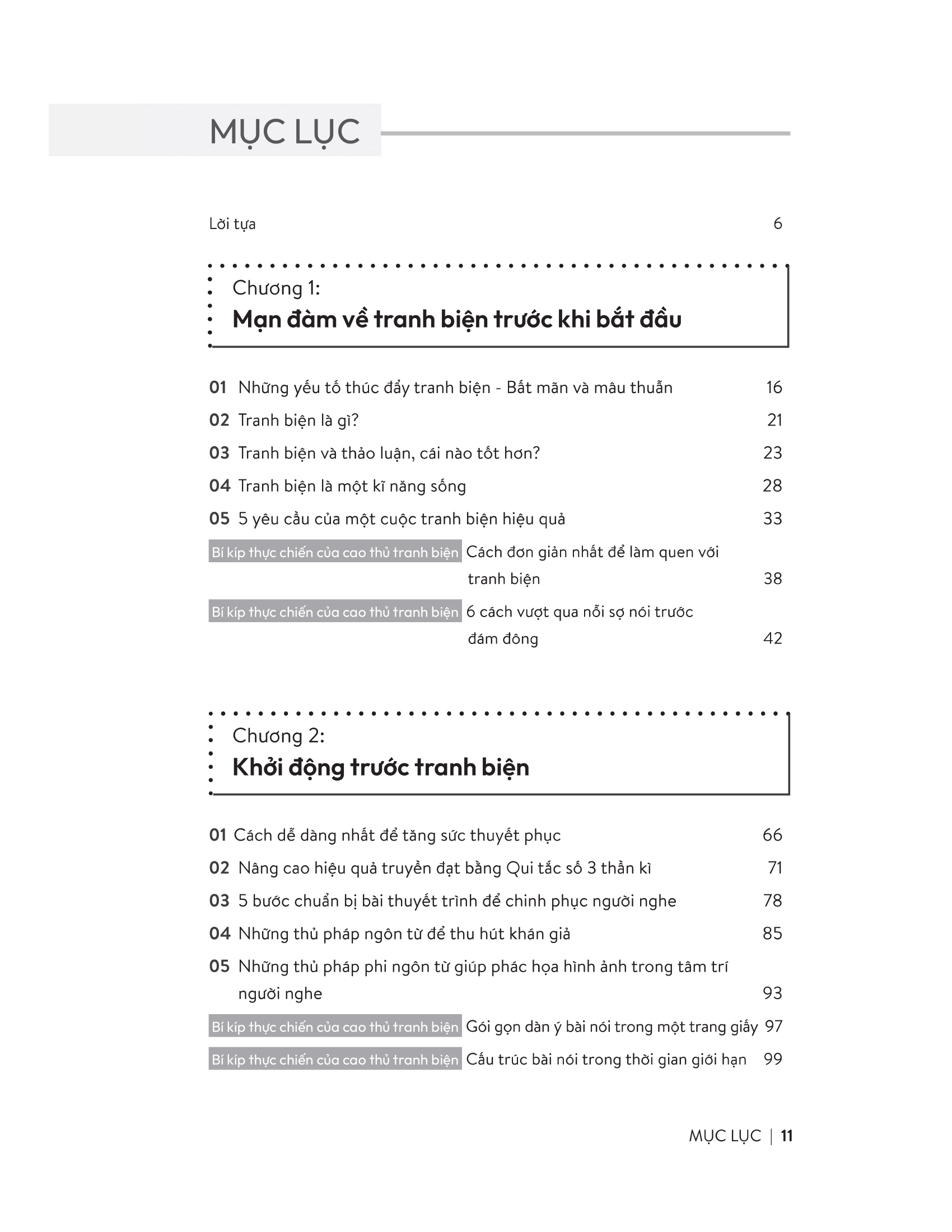 Chương 2 trình bày các phương pháp nâng cao khả năng truyền đạt và kĩ năng thuyết trình trước khi chính thức bước vào tranh biện.