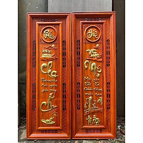 Tranh câu đối Cha Mẹ Phúc Đức ngang 37, cao 107, ván dày 3 cm | Tranh gỗ Vạn Đạt