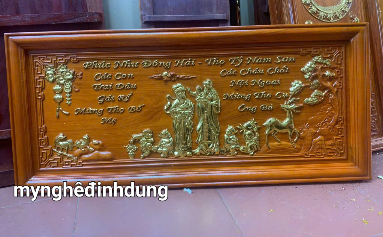 ✨Tranh điêu khắc mừng thọ cụ ông cụ bà bằng gỗ hương đỏ kt 48×108×4cm
