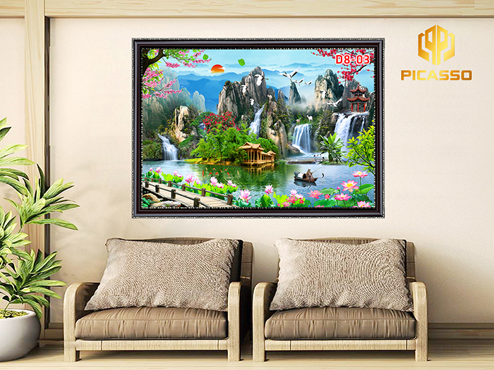 Tranh Kính 3D Cường Lực - Tranh Lụa 5D Sơn Thủy Hữu Tình Đẹp - Tranh 3D Nhật Minh 0963 681 665