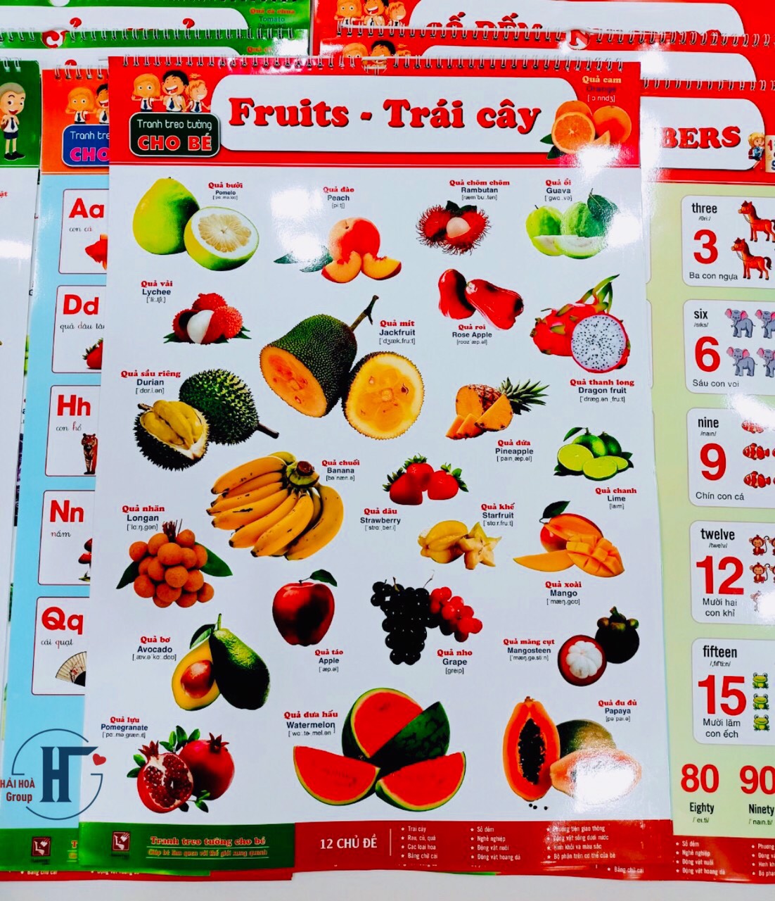 TÊN SẢN PHẨM: Bộ Tranh Treo Tường Song Ngữ (Song Ngữ) 12 CHỦ ĐỀ Cho Bé Kích thước: 40x60cm Giấy cán bóng 2 mặt Bộ Tranh Treo Tường Song Ngữ là công cụ