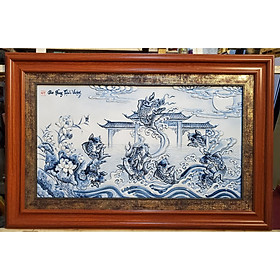 ✨Tranh sứ màu tràm - Cá chép hóa rồng vàng vượt vũ môn
