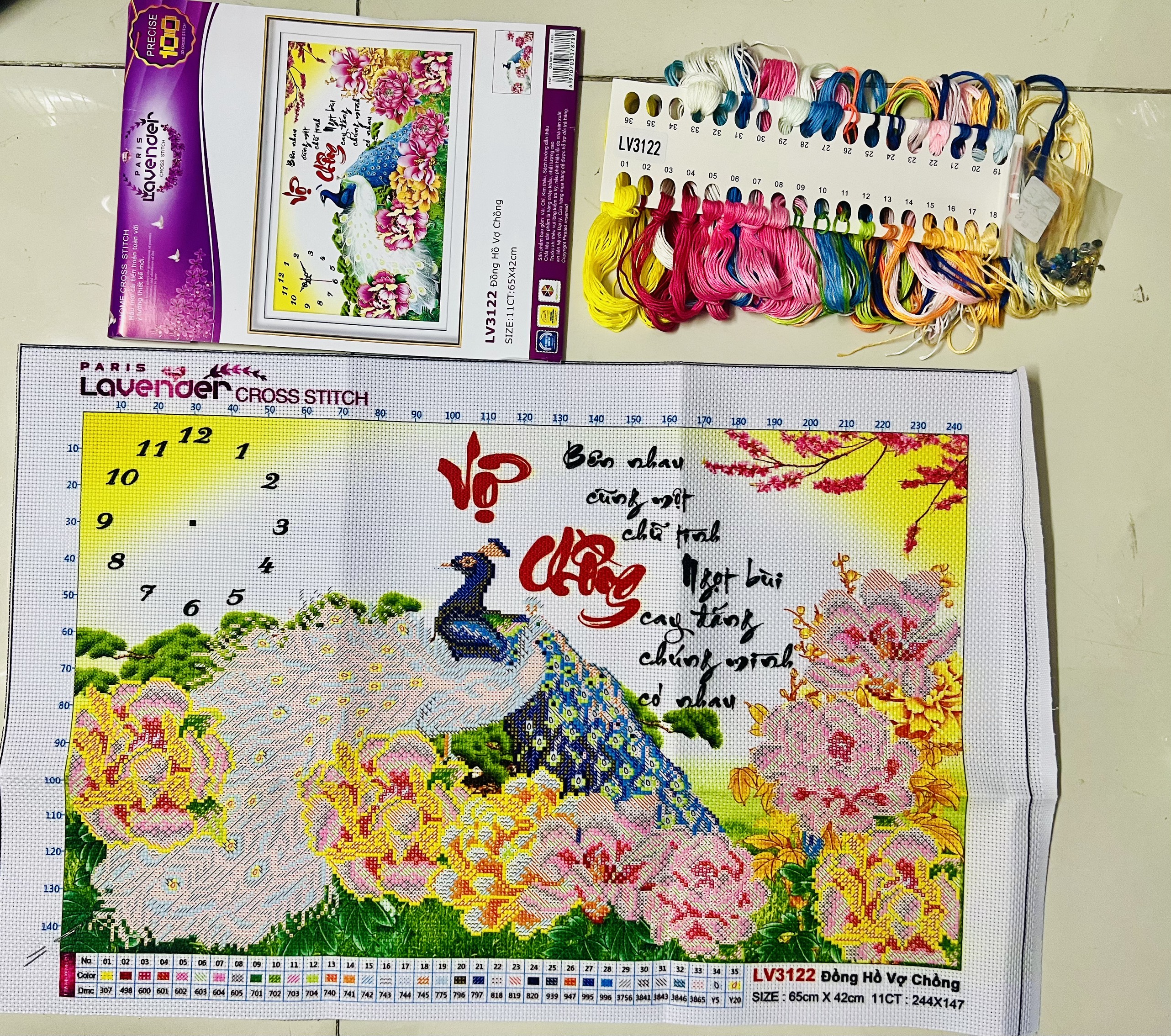 Tên tranh: Tranh thêu chữ thập Đồng hồ vợ chồng LV3122
