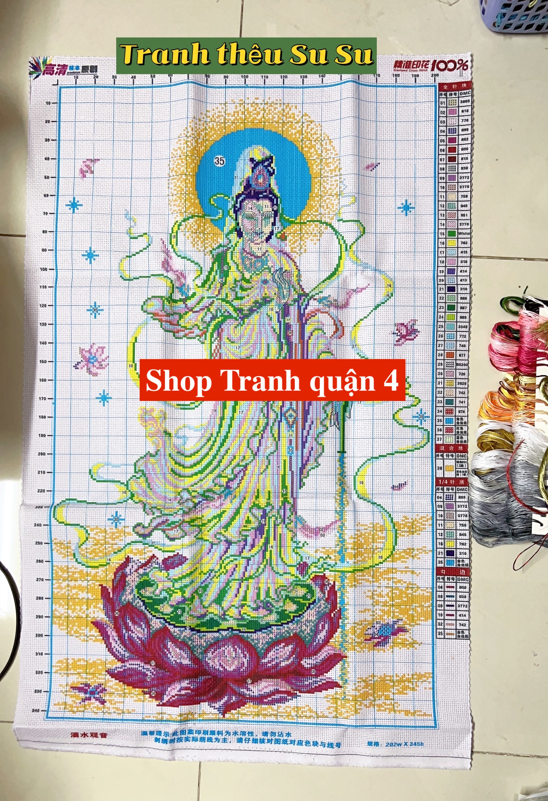 Tên tranh: Tranh thêu chữ thập Quan âm ban phước 247