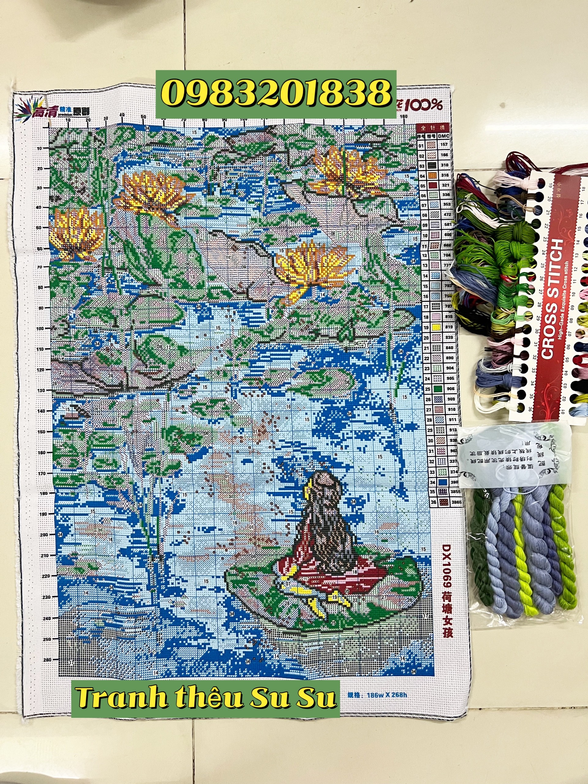 Tên tranh: Tranh thêu kín chữ thập ao sen 64352 Sản phẩm này phôi và chỉ rất đẹp, ký hiệu rõ ràng, tranh 9CT nên nan vải sẽ to hơn và dễ thêu hơn. Thể