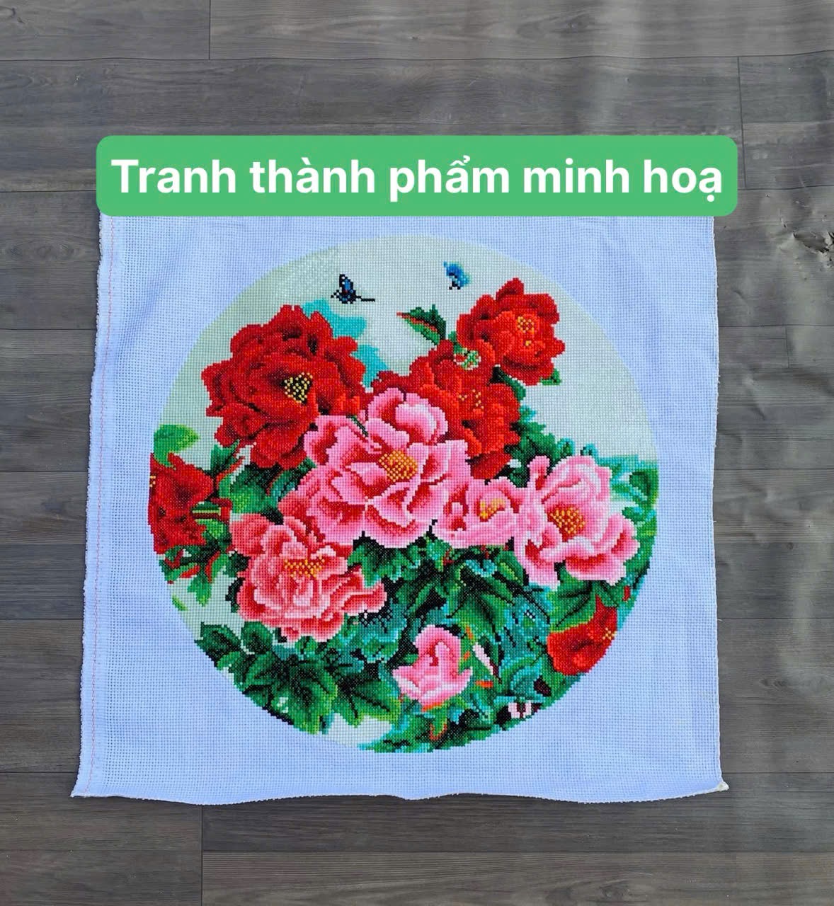 tranh thêu kín hoa mẫu đơn chưa thêu mua về tự thêu nha. lh 0965513916zalo