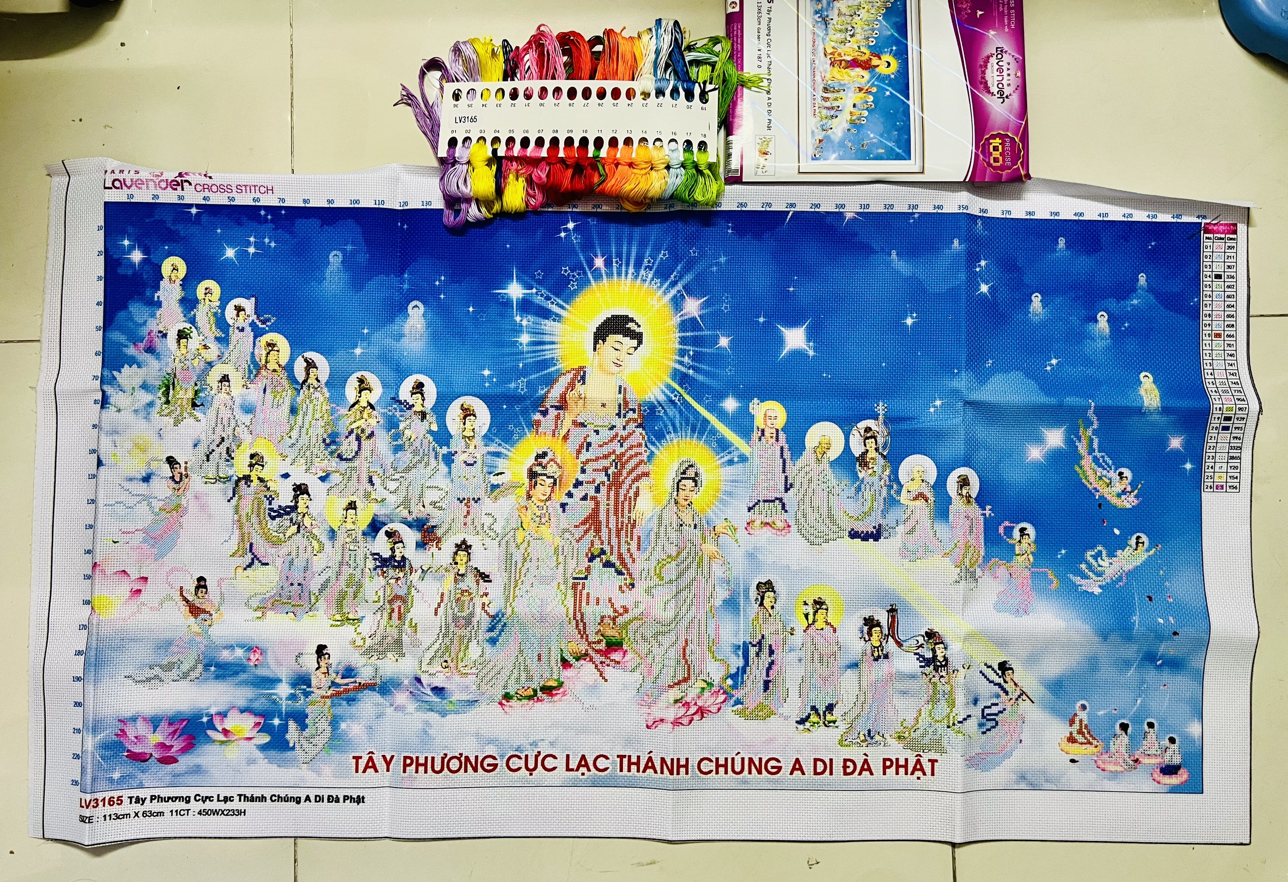 Tên tranh: Tranh thêu Tây phương cực lạc thánh chúng a di đà phật LV3165