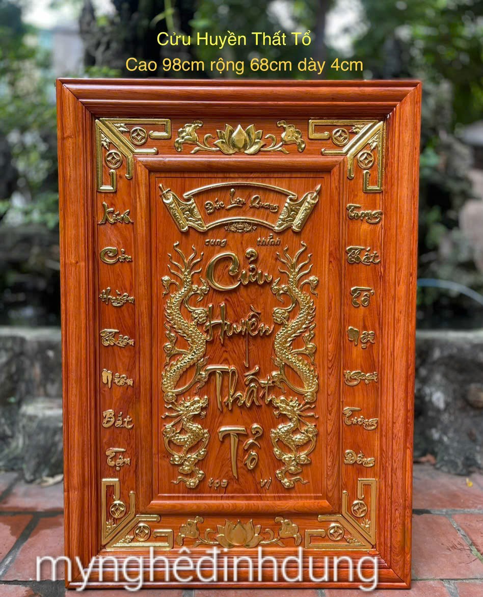 ✨Tranh thờ cửu huyền thất tổ bằng gỗ hương đỏ sơn pu dát vàng cao cấp kt 68×98×4cm
