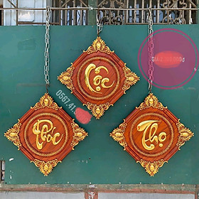 BỘ TRANH TREO TƯỜNG PHÚC LỘC THỌ GỖ HƯƠNG ĐÁ VUÔNG 45X3