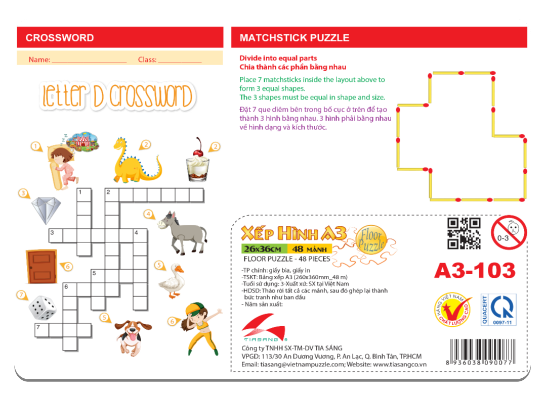 - Tranh xếp hình A3-048 mảnh còn giúp các bé tìm hiểu thêm về bảng chữ cái và bảng số tiếng Việt và cả tiếng Anh.