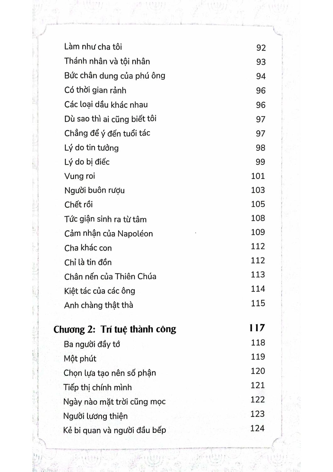 Mua tại TiktokTrí Tuệ Do Thái - Thành Công, Xử Thế, Giáo Dục Lịch sử dân tộc Do Thái là lịch sử đau thương. Trong đau khổ đó, người Do Thái dường như không còn lựa chọn nào khác ngoài việc nỗ lực gấp trăm lần để tìm kiếm sự sống và ứng phó với những hiểm họa có thể xảy ra bất cứ lúc nào. Chính vì vậy, thành công trong “sự nghiệp” và trở nên giàu có đã không chỉ là lý tưởng và khát vọng, mà còn là trách nhiệm và nghĩa vụ của mỗi người Do Thái. TRÍ TUỆ DO THÁI là bộ sách tập hợp những câu chuyện thú vị, chắt lọc những tinh hoa trí tuệ đỉnh cao đã giúp người Do Thái đạt được những thành tựu vĩ đại. Bộ sách gồm 2 tập: Tập 1 trình bày về cuộc sống, kinh doanh và của cải; tập 2 trình bày về thành công, xử thế và giáo dục. TRÍ TUỆ DO THÁI – THÀNH CÔNG, XỬ THẾ, GIÁO DỤC mang đến cho bạn đọc những nhận thức chung về nguồn gốc, lịch sử phát triển của người Do Thái; cùng với đó là các câu chuyện trí tuệ về xử thế, thành công và giáo dục mà mỗi người Do Thái đều phải học tập từ bé cho đến cuối đời. Sách như một món quà mà dân tộc Do Thái gửi tặng bạn đọc trên khắp thế giới, xứng đáng để chúng ta suy ngẫm và học hỏi.