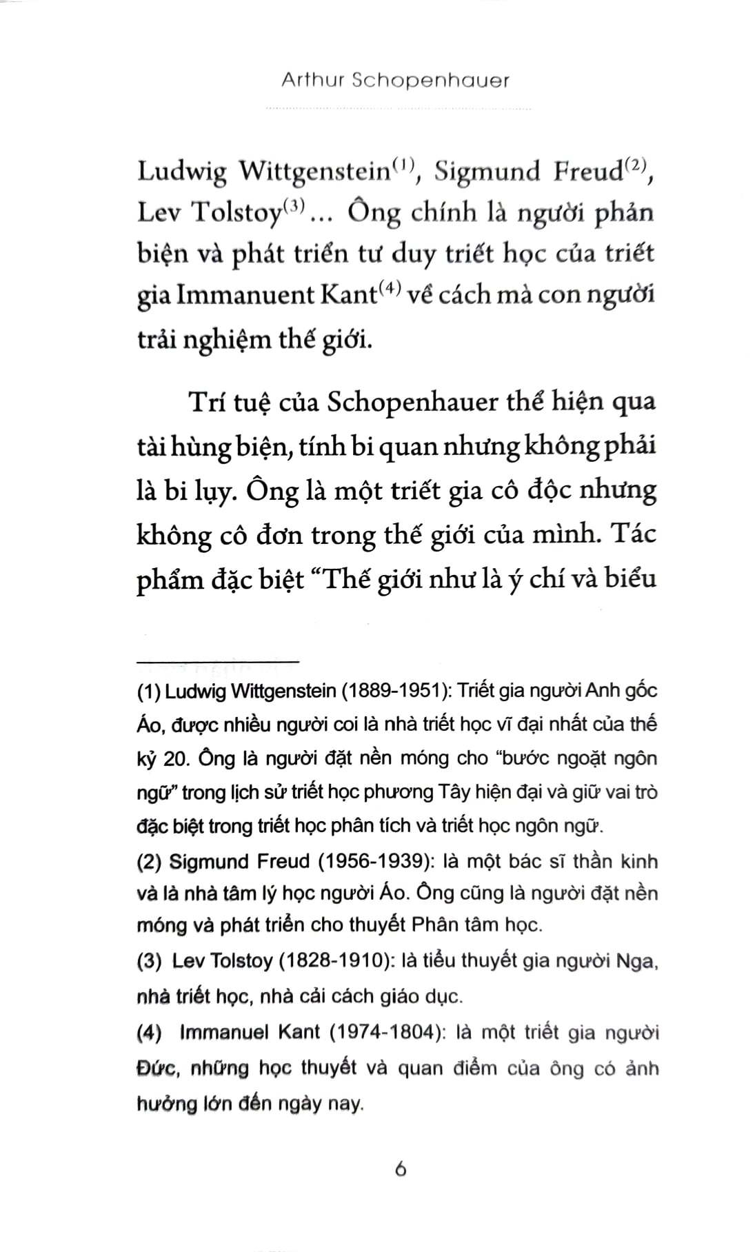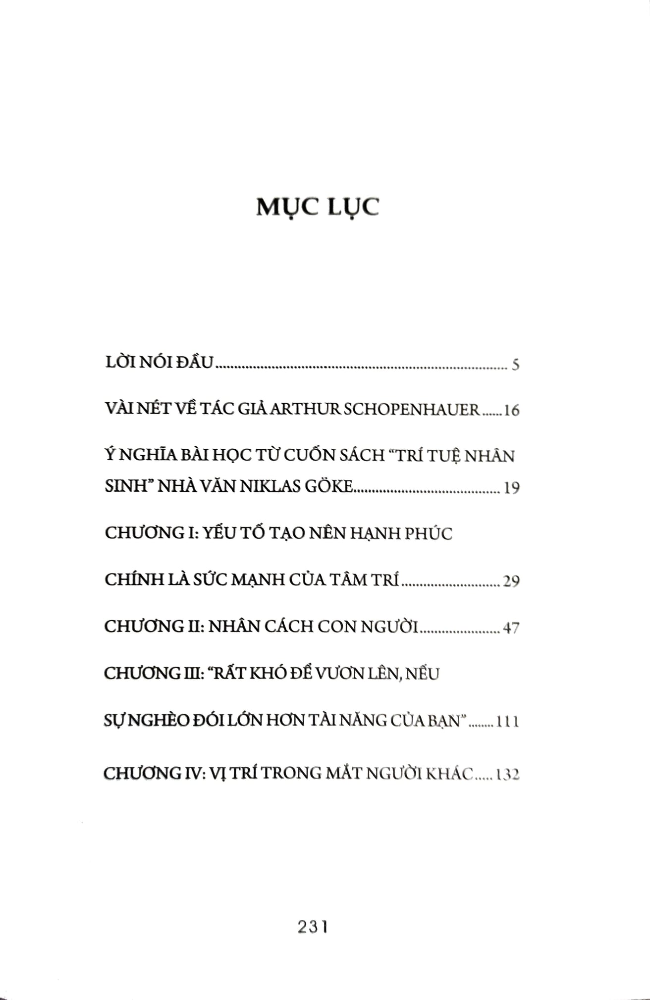 Mua tại TiktokTrí Tuệ Nhân Sinh GIỚI THIỆU TÁC GIẢ: Arthur Schopenhauer, một trong những triết gia vĩ đại của nước Đức, nổi tiếng với những quan điểm đầy sáng tạo và phản biện sâu sắc về cuộc sống và nhân sinh. Ông được biết đến với việc khuyến khích một lối sống đơn giản, khổ hạnh và chay tịnh, mặc dù trong cuộc sống cá nhân ông lại thích ăn thịt, uống rượu vang và mê mẩn phụ nữ. Schopenhauer đã mở rộng và phát triển triết lý Kant về cách con người trải nghiệm thế giới, đặc biệt là trong việc khám phá sâu sắc về bản chất của khổ đau và sự vô ích trong cuộc sống. Triết gia này không chỉ nổi tiếng với sự độc lập tư tưởng mà còn với sự dám nghĩ, dám nói và sự sâu sắc về tâm lý con người, tạo nên dấu ấn sâu sắc trong lịch sử triết học thế giới. GIỚI THIỆU TÁC PHẨM: TRÍ TUỆ NHÂN SINH – CUỘC DẠO CHƠI CỦA MỘT “ĐỘC CÔ” GIỮA CUỘC ĐỜI. Trí Tuệ Nhân Sinh của Arthur Schopenhauer là một tác phẩm triết học sâu sắc về hạnh phúc và ý nghĩa cuộc sống. Trong cuốn sách này, Schopenhauer đề cập nhiều điều thú vị mà bạn đọc có thể chiêm nghiệm và tự rút ra cho mình những bài học quý giá. Ông cho rằng, những gì một người có ở bản thân mình, cùng với mục tiêu cuộc sống của anh ta, là yếu tố trực tiếp dẫn đến hạnh phúc và phúc lợi của người đó. Tất cả những thứ khác chỉ là trung gian và gián tiếp và ít bị ảnh hưởng. Schopenhauer lập luận, con người có thể dễ dàng chịu đựng một điều bất hạnh đến từ bên ngoài dễ dàng hơn là điều bất hạnh từ bên trong. Vận mệnh có thể thay đổi, nhưng tính cách thì không. Vì vậy, những phước lành từ chủ quan, một bản chất cao thượng, một cái đầu có năng lực, một tính khí vui vẻ, tinh thần trong sáng, một thể chất khỏe mạnh, là những yếu tố đầu tiên và quan trọng nhất của hạnh phúc. “Đừng nên kỳ vọng nhiều vào người khác, hay nói chung là đừng nên kỳ vọng từ thế giới bên ngoài” – như một châm ngôn đúng với bất kỳ ai! Chính bản thân mình là nguồn gốc của những điều tốt đẹp nhất mà con người có thể đạt được. Càng đúng hơn khi khẳng định – một người càng vui vẻ hạnh phúc hơn khi tìm thấy nguồn vui trong chính mình.