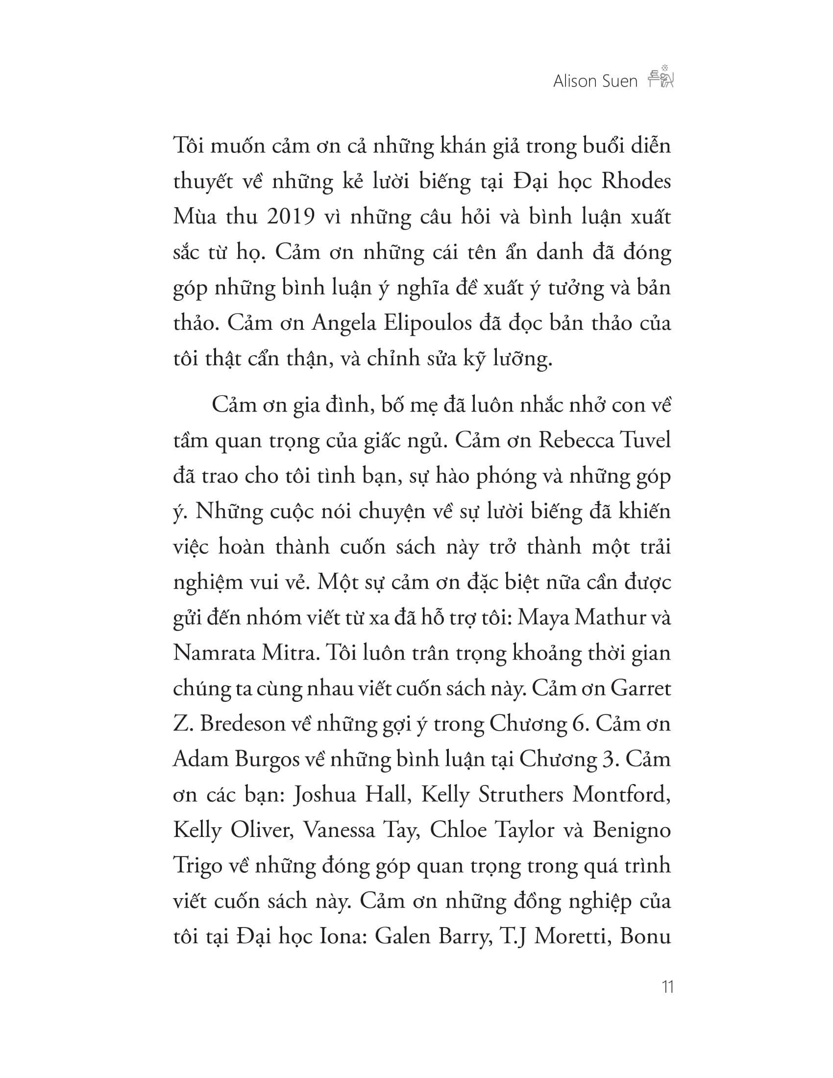 Trái ngược lại với văn hóa phát huy hết hiệu suất làm việc của chúng ta, Alison Suen cảm thấy thật nực cười khi chúng ta luôn chỉ trích kẻ lười biếng – những cá nhân chỉ làm cho qua chuyện để được yên thân. Bà đưa ra phân loại những kiểu chỉ trích người lười biếng thường thấy, và biện luận rằng những đánh giá trên sai, hoặc là tiền đề của những đánh giá đó có vấn đề. Tuy cuốn sách này bào chữa cho sự lười biếng, nhưng nó không hề bênh vực lối sống lười biếng và nâng tầm nó lên thành chìa khóa hướng đến điều gì đó tốt đẹp hơn (như bước tiến mới của văn hóa hay sự tự giác ngộ bản thân gì đó), như một vài học giả vẫn nói.