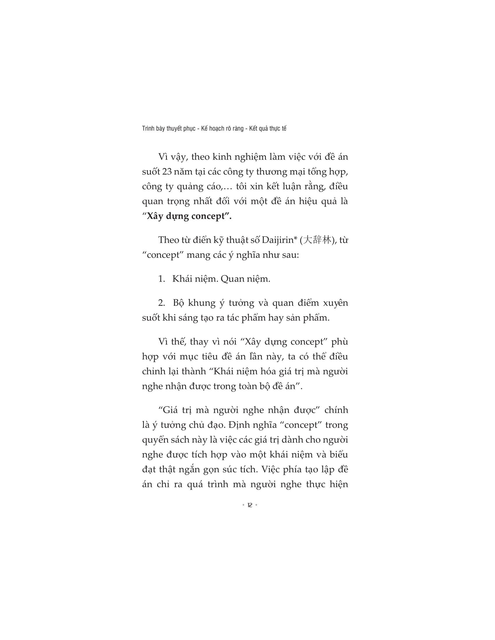 Chìa khóa cho vấn đề nằm ở việc nắm vững tư duy cũng như kỹ thuật để xây dựng ý tưởng chủ đạo, tạo ra các giá trị tiềm năng cho người nghe, đồng thời truyền tải chúng một cách ngắn gọn nhưng hiệu quả. Khi trình bày thuyết phục rành mạch, với kế hoạch rõ ràng xác đáng cùng kết quả thực tế khả thi, chắc chắn đề xuất của bạn sẽ dẽ dàng “chạm đích”. Cuốn sách với sáu chương ngắn gọn tập trung vào một kỹ thuật được gọi là «Thuyết trình đơn giản », một kỹ thuật cân bằng giữa việc tạo ra giá trị hấp dẫn và việc trình bày nó một cách rõ ràng dễ hiểu.