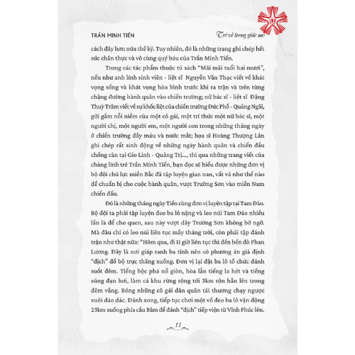 Cuốn sách Trở về trong giấc mơ được nhà văn Đặng Vương Hưng sưu tầm, tuyển chọn, tập hợp từ những trang nhật ký của liệt sĩ Trần Minh Tiến viết trong khoảng thời gian từ tháng 11/1966 đến tháng 3/1968, ghi lại những tháng ngày tập luyện gian nan, vất vả để chuẩn bị cho cuộc hành quân vượt Trường Sơn vào miền Nam chiến đấu.