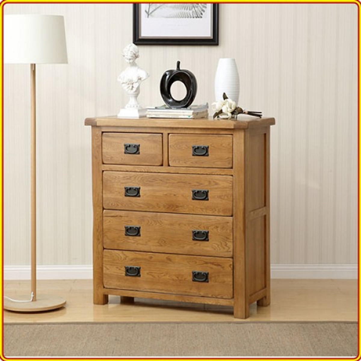 - Tủ 05 Ngăn Kéo ≈ 85% Gỗ Sồi + 15% Gỗ Thông + Vernerr Gỗ