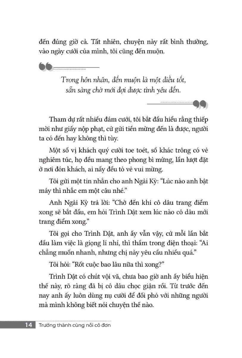 Đây là cuốn sách nói về hôn nhân và tình yêu của những người “đã từng” trẻ của thế hệ 9x. Đến một tuổi nhất định, thái độ đối với hôn nhân và gia đình lại hết sức phức tạp: Người ta hạnh phúc trong sự lo âu, đồng thời lo âu trong sự ngọt ngào của hạnh phúc.