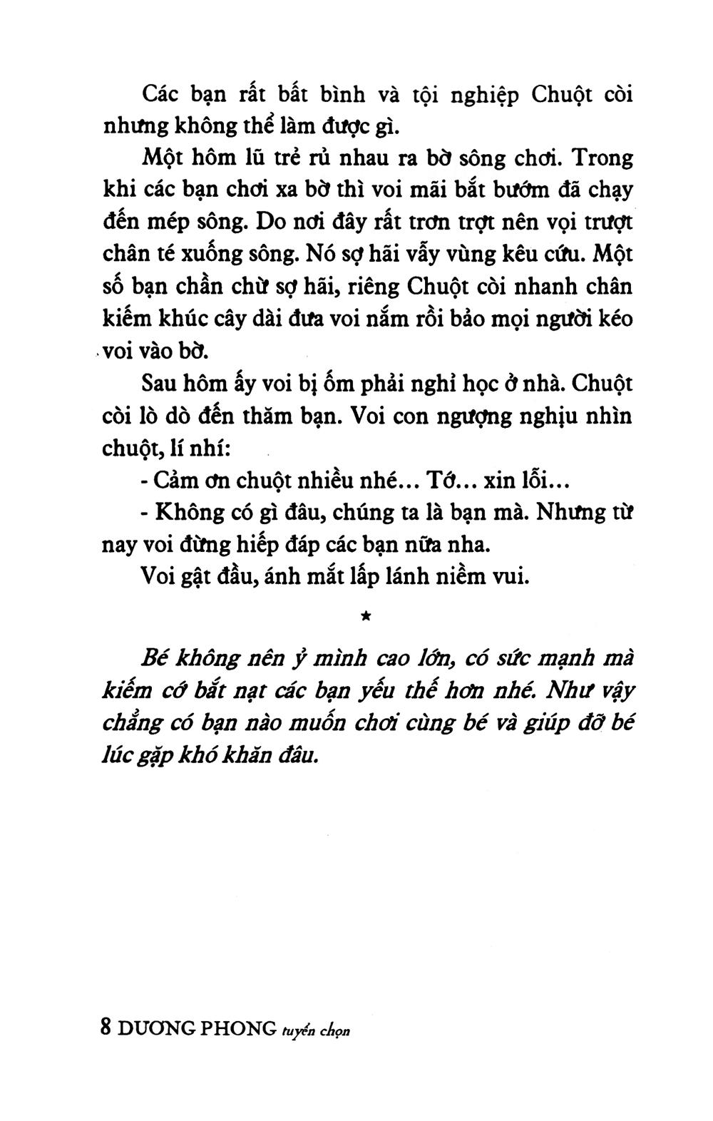 Mua tại TiktokNhững mẩu chuyện trong cuốn sách nhỏ này vừa dung hợp được cả tính kỳ ảo lẫn tính hiện thực trong cuộc sống đương đại. Các em sẽ được sống trọn vẹn trong thế giới cổ tích tuổi thơ huyền diệu, cảm nhận được vẻ đẹp đa sắc màu của cuộc sống. Từ đó, hình thành trong tâm hồn các em những tình cảm tốt đẹp, hướng về tính Chân - Thiện - Mỹ như lòng dũng cảm, đức hy sinh, sự giản dị Cha mẹ hãy cùng đọc những câu chuyện giản dị này với con em của mình để lắng nghe những chia sẻ trẻ thơ và thấu hiểu hơn những ước mơ, tình cảm của các bé!