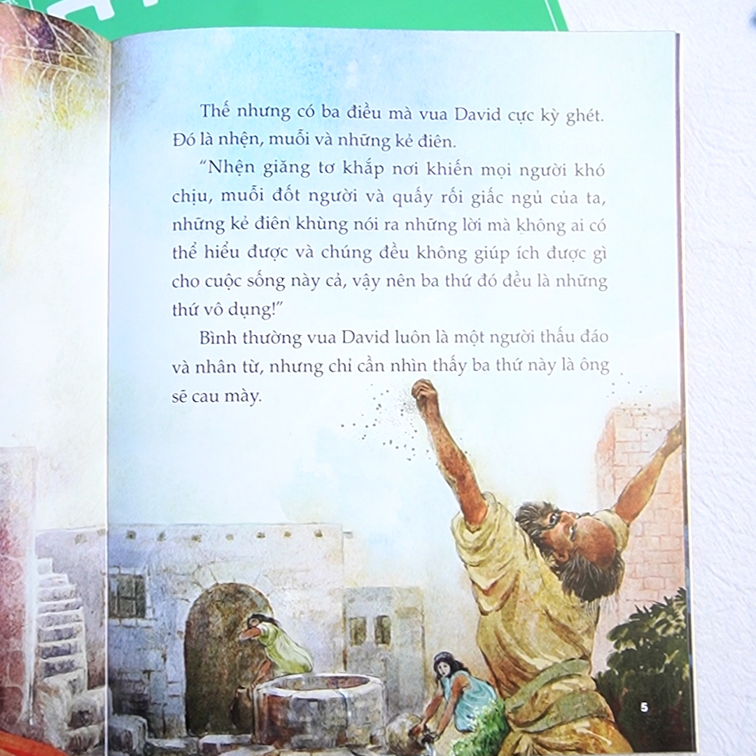- Nhện, muỗi và kẻ điên (tôn trọng) Vua David là một vị vua khôn ngoan và chu đáo, nhưng ông lại coi thường những loài côn trùng nhỏ như nhện, muỗi và những người điên. Bởi vì ông tin rằng chúng không có tác dụng gì cả. Tuy nhiên, sau ba lần nhận được sự giúp đỡ lớn lao từ những điều mà ông vẫn coi thường, vua David đã học cách tôn trọng mọi vật mọi việc dù chỉ là những điều nhỏ bé và tầm thường nhất.