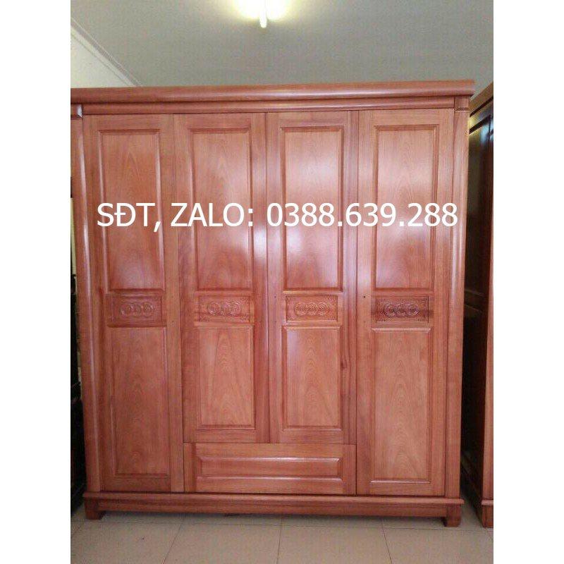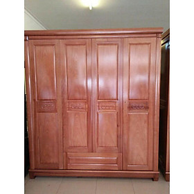 Tủ quần áo gỗ gõ đỏ 4 cánh đầy đủ công năng ngang 2m hiện đại | Minh Khôi