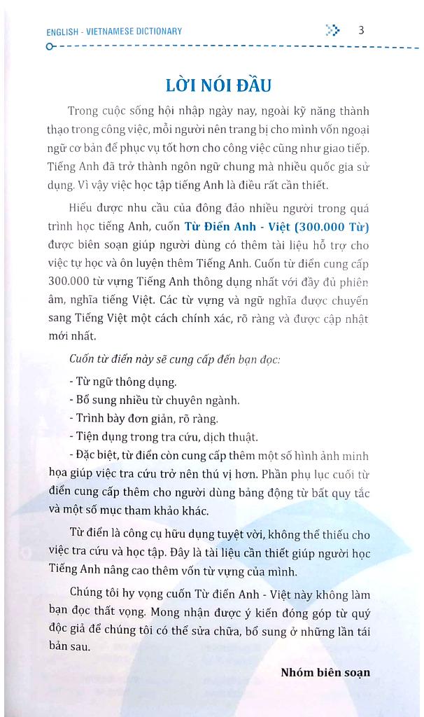 Nhằm đáp ứng nhu cầu học tiếng Anh đa dạng của nhiều người. Nhóm chúng tôi đã biên soạn cuốn từ điển Anh – Việt này để phục vụ cho người học tiếng Anh thuộc
