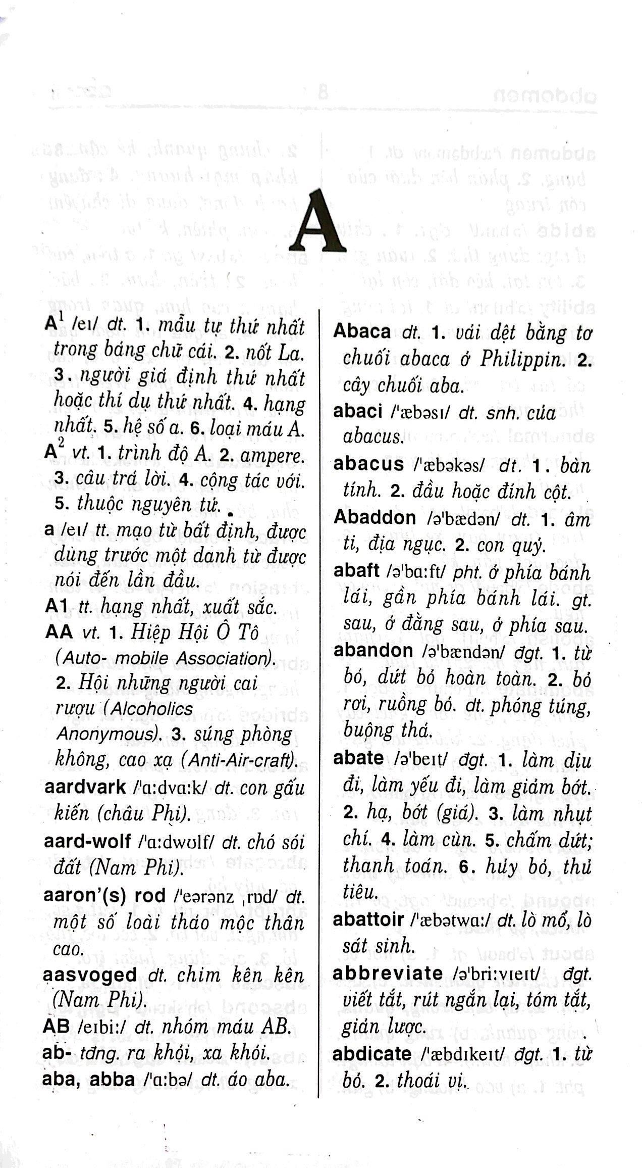 Nhằm đáp ứng nhu cầu học tiếng anh đa dạng của độc giả , chúng tôi đã biên soạn bộ từ điển Anh - Việt để phục vụ cho người học tiếng anh thuộc mọi