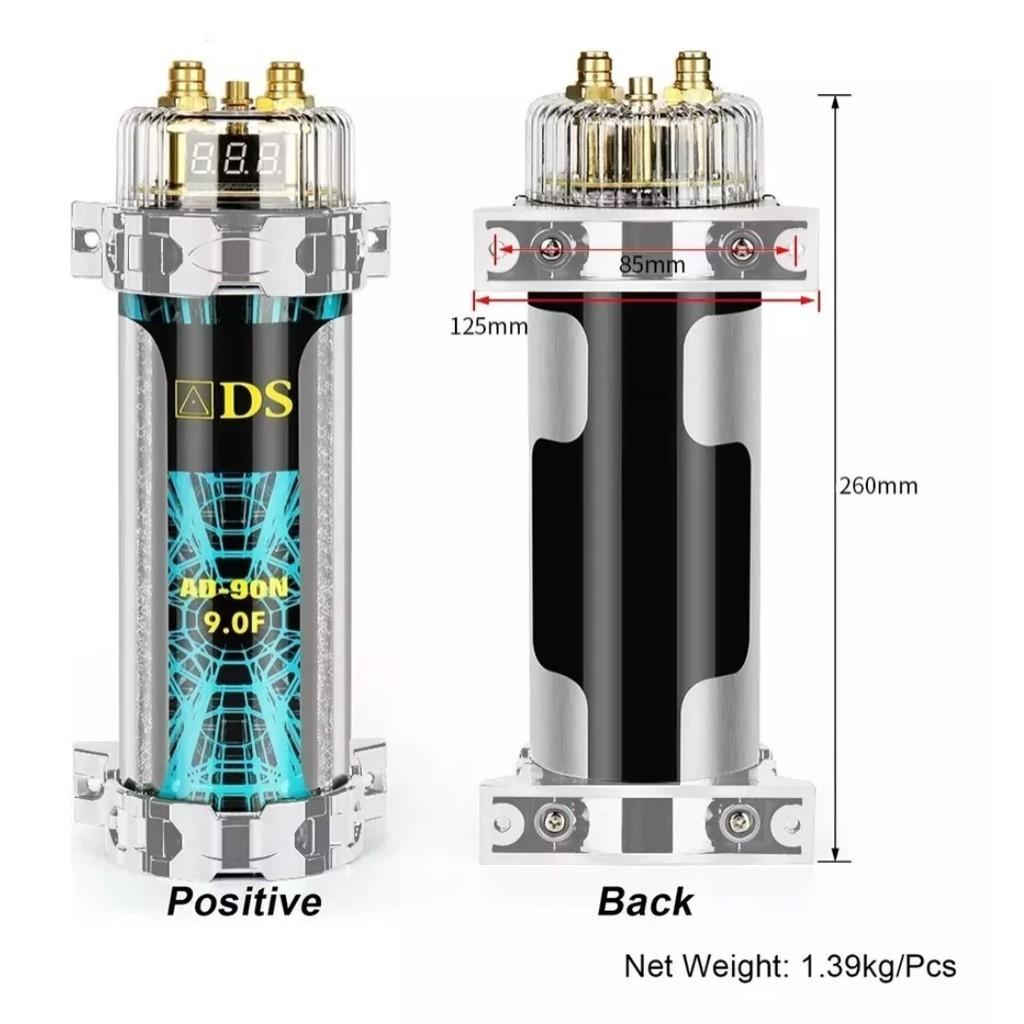 9 tụ điện âm thanh xe hơi FaradTụ điện 9.0 farad, rất thích hợp cho hệ thống lên đến 10000W, có hiệu suất tốt và có thể hoạt động hiệu quả. Bao gồm giá đỡ trong suốt giúp bạn lắp đặt nhanh chóng